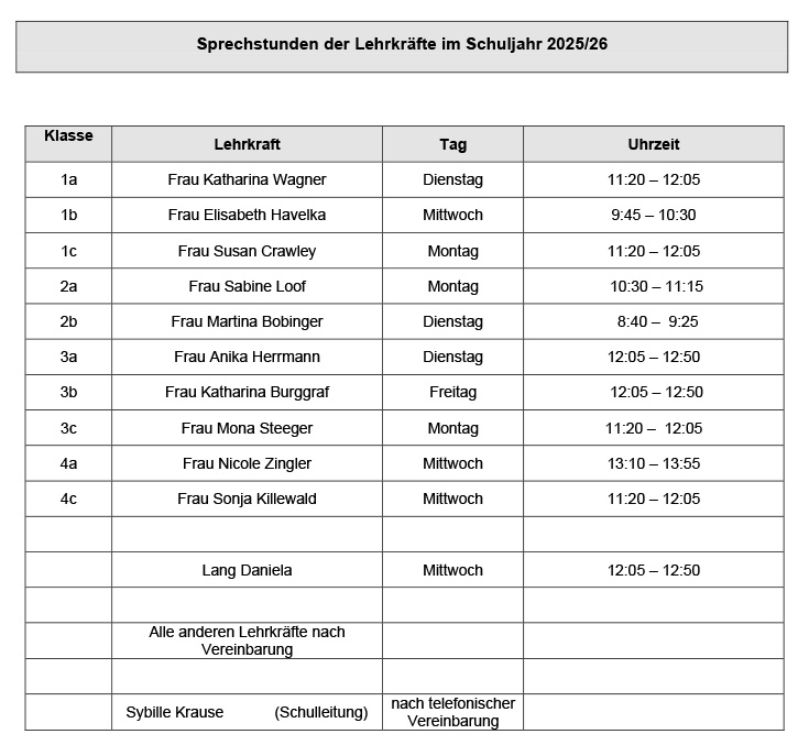 Elterngespräch. Nehmen Sie daher die angegebenen Sprechstundenzeiten wahr.